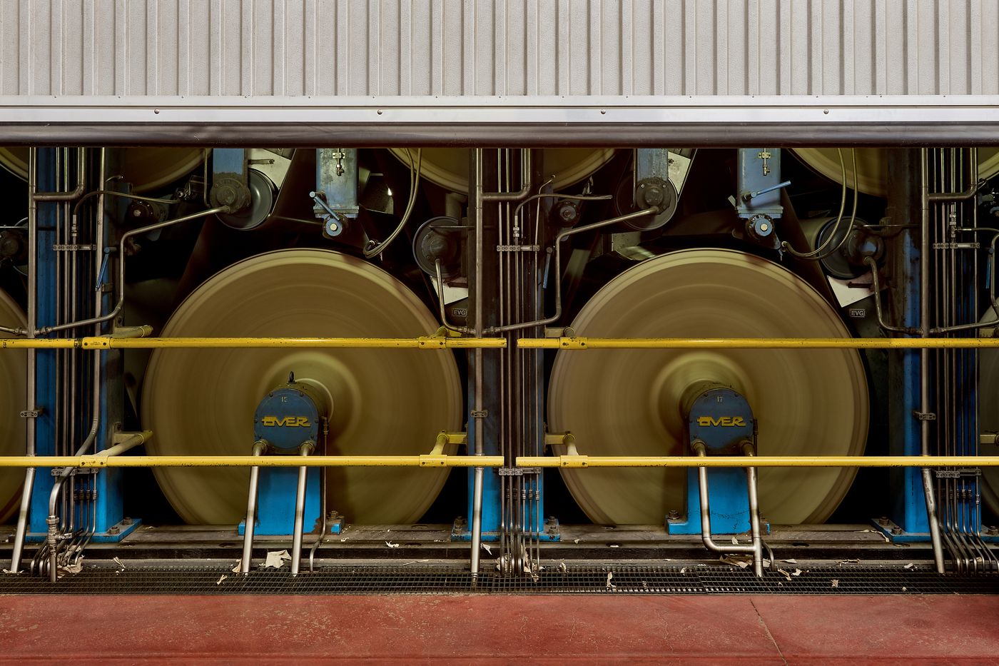 Il foglio di carta in uscita dai cilindri essiccatori viene avvolto a mezzo arrotolatore in grossi rotoli. Successivamente, mediante ribobinatrice, si provvede a confezionare il prodotto in bobine aventi caratteristiche di altezza diverse, come da richieste del cliente.