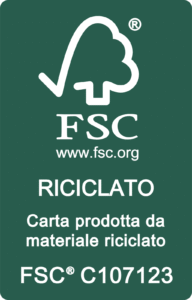 La certificazione FSC® Recycled, rilasciata dal Forest Stewardship Council®, garantisce che la carta e il cartone che utilizziamo provengono da materiali riciclati e tracciati, provenienti da fonti controllate e responsabili.